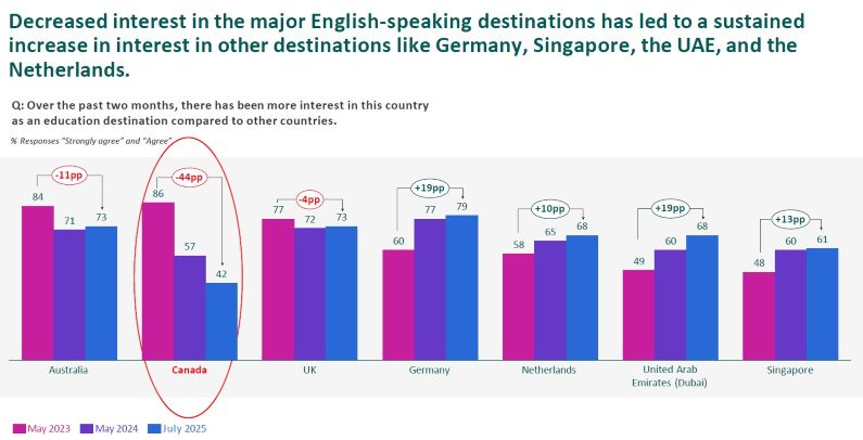 Recent Navitas Agent Perception Survey data shows declining interest in Canada (conducted with 472 agents from 28 countries in June and July 2025).